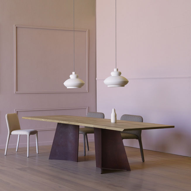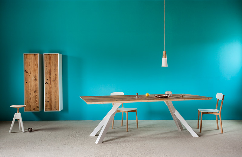 Esta colección de Mesas de Mobles & Architetture que trae en exclusiva para México procedentes de Italia y Alemania producidas por jóvenes talentos, con un estilo vanguardista pensado en una casa elegante y sobria, con materiales auténticos con respeto a las formas y los colores del medio ambiente. Los materiales van desde la madera maciza, la chapa de madera, el acero, el vidrio y el aluminio los cuales son materiales compatibles con el medio ambiente.